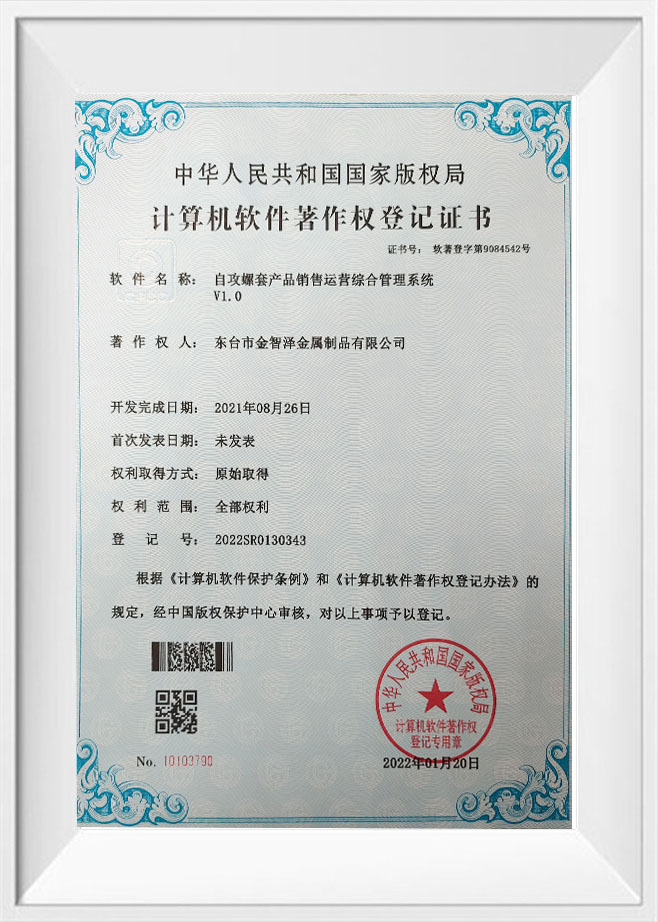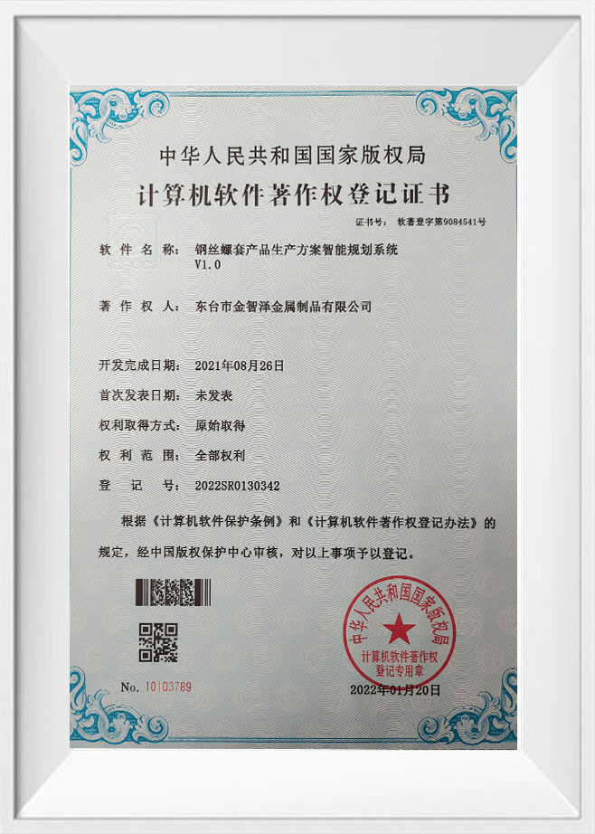 Zertifikat zur Registrierung des Urheberrechts an Computersoftware